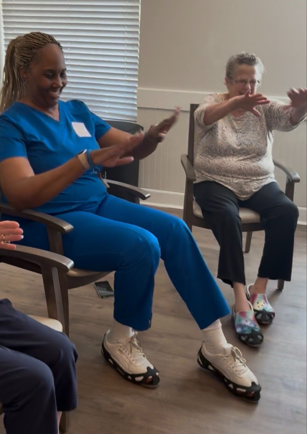Upbeat seated dances that gently elevate heart rate and energy while remaining safe and accessible. Great for wellness programming and residents who enjoy a little extra movement